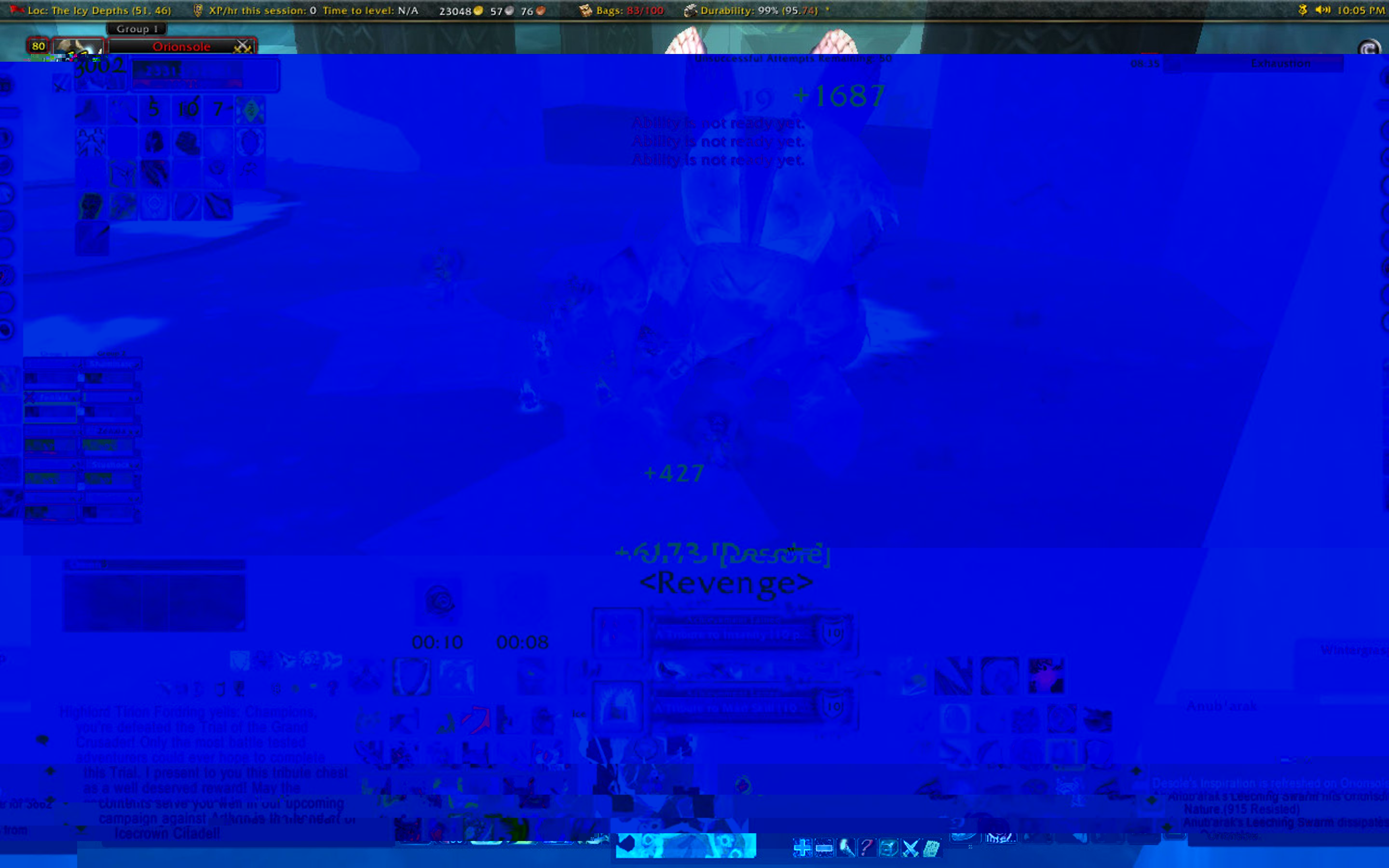 can't believe firefighter & yogg+1 is still much more difficult then tribute to insanity lol. but i guess they should be since they're metas for a 310 mount. nonetheless, cheers to all! that last 10% on Anub seemed to last forever .